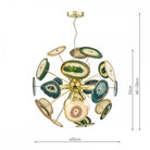 Another astonishing statement piece from dar Lighting, the Achates pendant ceiling light is made of unique pieces of real agate stone. Each formed naturally in volcanic rock, sliced and polished to a high shine. The natural material is selected in a subtle blend of greens and blues, contrasting elegantly with the warm gold of the metalwork which looks spectacular whether lit or unlit.