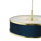 Illuminate your space with this contemporary stunner. The Alvaro 3 Light Pendant features a brushed brass frame and frosted acrylic diffusers that emit a warm glow. Velvet shades in rich navy blue add a touch of drama and texture.