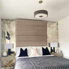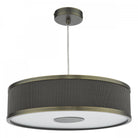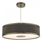 The Alvaro 3 light pendant in mushroom (warm grey) and Antique brass with its slender profile provides a contemporary silhouette; tightly pleated cotton fabric add texture adds interest to this minimal form. This is a versatile range in two sizes and colourways.