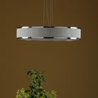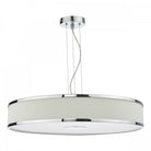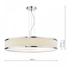 The Alvaro 6 light pendant in ivory and polished chrome with its slender profile provides a contemporary silhouette; tightly pleated cotton fabric add texture adds interest to this minimal form. This is a versatile range in two sizes and colourways.
