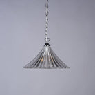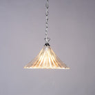 The French-inspired Ardeche ceiling light features a flared and fluted clear glass pendant shade and a polished chrome ceiling plate.
