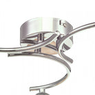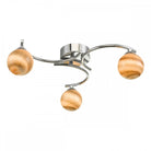 The ATIYA semi flush 3 light ceiling light in polished chrome and planet art glass. The ceiling light is specifically designed to be very close to the ceiling for use in low ceiling rooms such as new build houses or small cottage.