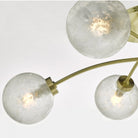 The Avari 6 light Semi Flush has glue chip glass shades, which gives the illusion of spheres of ice crystals. Finished in satin brass, this fitting would suit any living space.