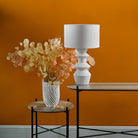 Crafted with a tactile textured finish, the Bidelia White Table Lamp brings a sculptural yet understated elegance to your living space. Its white base features delicate contours and clean lines, topped by an ivory linen shade for a soft, diffused glow. Finished with a white fabric braided cable, incorporating an inline rocker switch this table lamp pairs perfectly in living rooms, bedrooms or anywhere a touch of contemporary style is needed. Whether you're curling up with a book on the sofa or winding down for the evening, the Bidelia lamp lends a warm and welcoming light with its minimal, modern silhouette. For a flawless fusion of form and function, look no further than this sleek and stylish design from dar lighting.