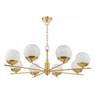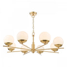 - Dar Lighting Bombazine Solid Brass & Opal Shades 8 Light Pendant BOM0835