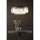 The Celeus 8 light 80cm chandelier is a stunning statement chandelier combining clear faceted crystal with a contrasting textured anthracite finish. Our designers have concentrated on keeping this fitting looking elegant and sophisticated. Special attention was made to obscure the crystal fittings with the anthracite frame. This 80cm chandelier makes a perfect statement light in most living and dining rooms, especially where black accents such as Crittal doors are used.