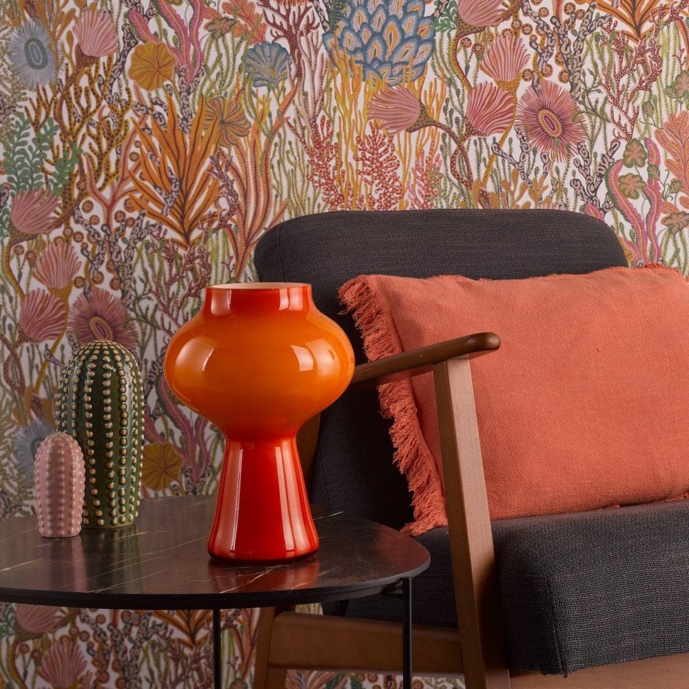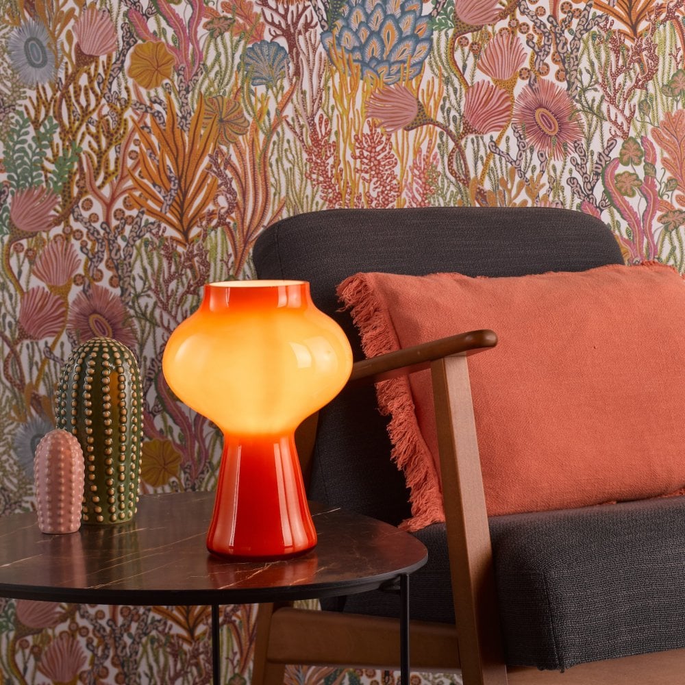 This eye-catching Chrissy Table Lamp boasts a stunning art glass design in a vibrant orange hue that's sure to turn heads. Perfect for adding a warm glow to your bedroom, or as a stylish accent in your hallway or living room, this versatile piece fits seamlessly into any space. Its vintage-inspired silhouette brings a touch of retro charm, while the bold color adds a contemporary flair.