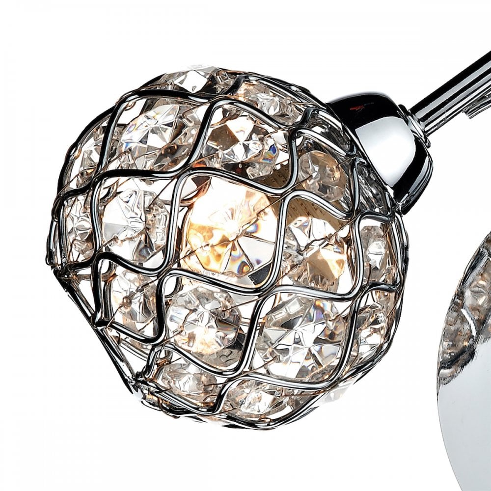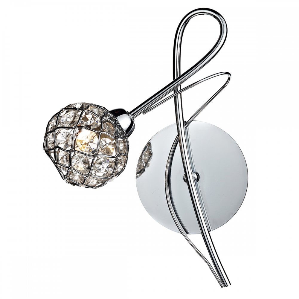 The CIRCA Wall Light features a polished chrome frame and a decorative faceted glass shade.