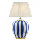 The Circus Ceramic Table Lamp Blue & White brings the big top to your living room. Its handcrafted ceramic base features bold blue and white stripes straight, while antique brass accents add a dash of golden glamour. An in-line rocker switch mounted on the white cable lets you illuminate the scene with ease. Handmade and hand-painted, each lamp is a unique work of art that conjures images of trapeze artists, tightrope walkers and show ponies performing under the spotlight. Place a pair on either side of a sofa or cabinet for a look that’s sure to steal the show. Ladies and gentlemen, boys and girls, feast your eyes on the greatest lamp on earth!