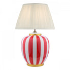 The Circus Ceramic Table Lamp Red & White brings the big top to your living room. Its handcrafted ceramic base features bold red and white stripes straight, while antique brass accents add a dash of golden glamour. An in-line rocker switch mounted on the white cable lets you illuminate the scene with ease. Handmade and hand-painted, each lamp is a unique work of art that conjures images of trapeze artists, tightrope walkers and show ponies performing under the spotlight. Place a pair on either side of a sofa or cabinet for a look that’s sure to steal the show. Ladies and gentlemen, boys and girls, feast your eyes on the greatest lamp on earth!