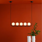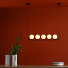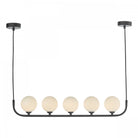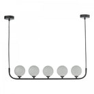 Crale 5 light bar pendant frame is available in polished chrome or matte black along with smoked or opal glass bulbs with an iconic and simplistic design to enhance your home.