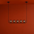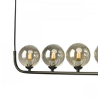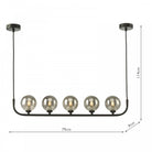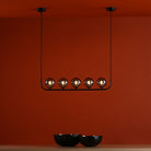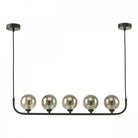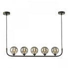 Crale 5 light bar pendant frame is available in polished chrome or matte black along with smoked or opal glass bulbs with an iconic and simplistic design to enhance your home.