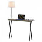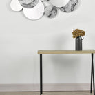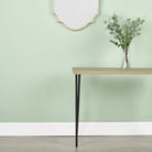 The narrow Data console table is ideal for small rooms and hallways thanks to a depth of 25cm. Featuring an oak effect finish with black metal legs.