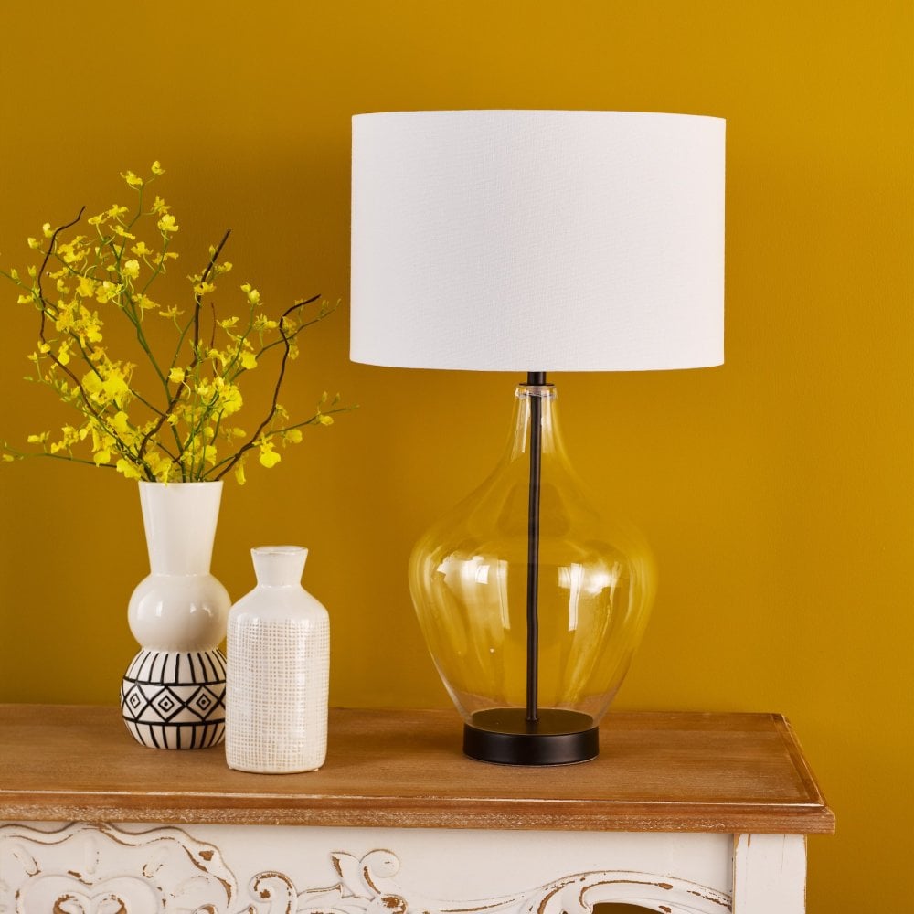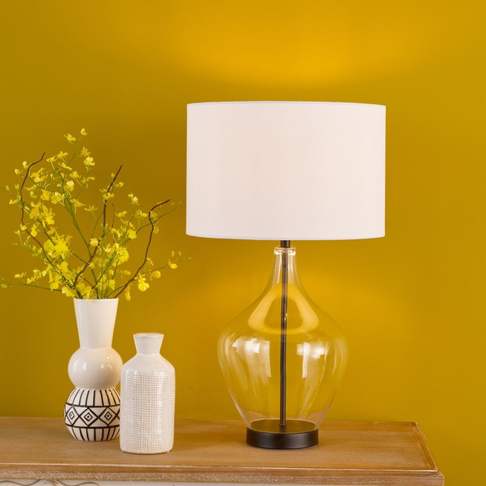 Illuminate your space with the Drago table lamp from dar lighting, a stylish blend of glass and matt black that effortlessly bridges classic and contemporary design. This versatile glass table lamp features a sleek base that's equally at home in a cosy reading nook or a modern home office. The included ivory linen shade softens the light, creating a warm and inviting ambiance. Whether you're looking for a statement piece or a subtle accent, this black table lamp delivers both form and function. With its timeless appeal and quality craftsmanship, the Drago table lamp is sure to be a favourite lighting solution for years to come.