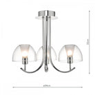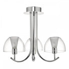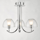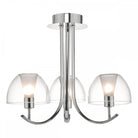 The Duana features sleek, curved arms in a polished chrome finish that attach to open glass shades, which creates a beautiful semi-flush light.