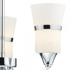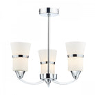 The DUBLIN 3lt Semi Flush features tall opal glass shades with decorative brushed metal bands and polished chrome frame.