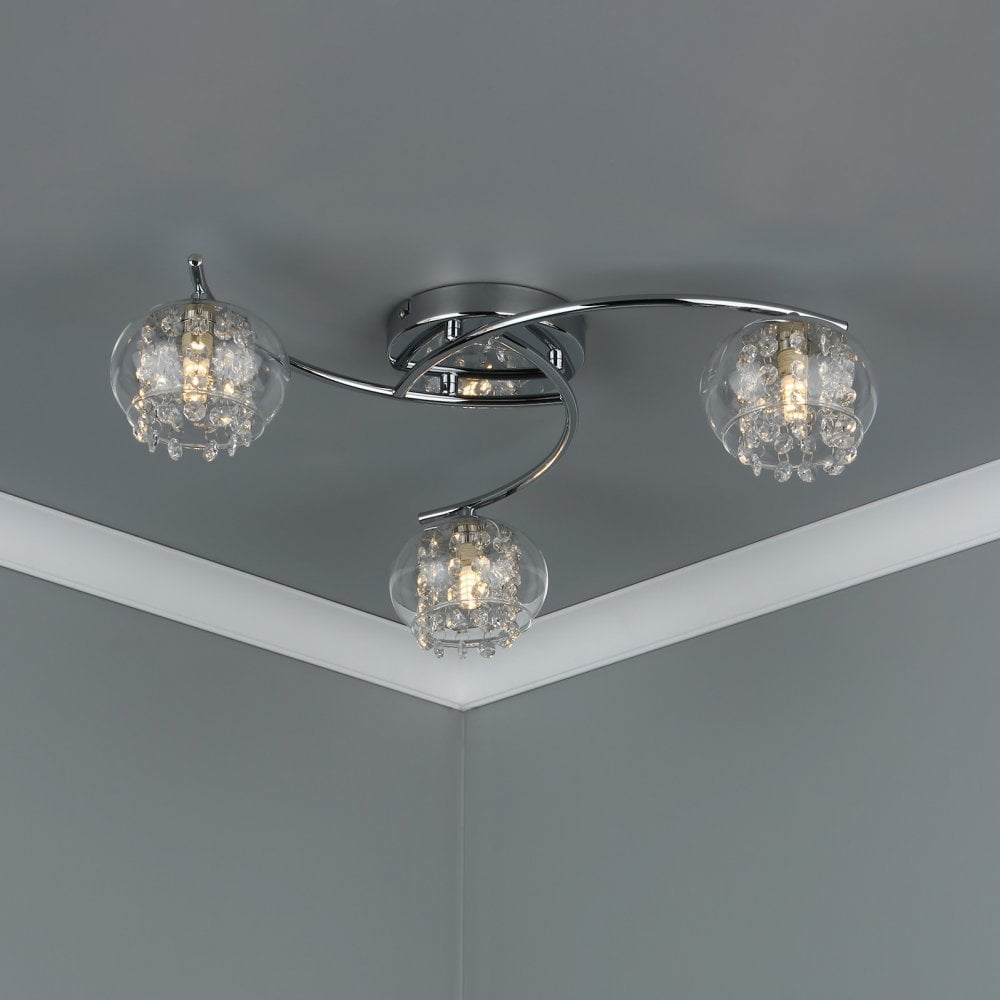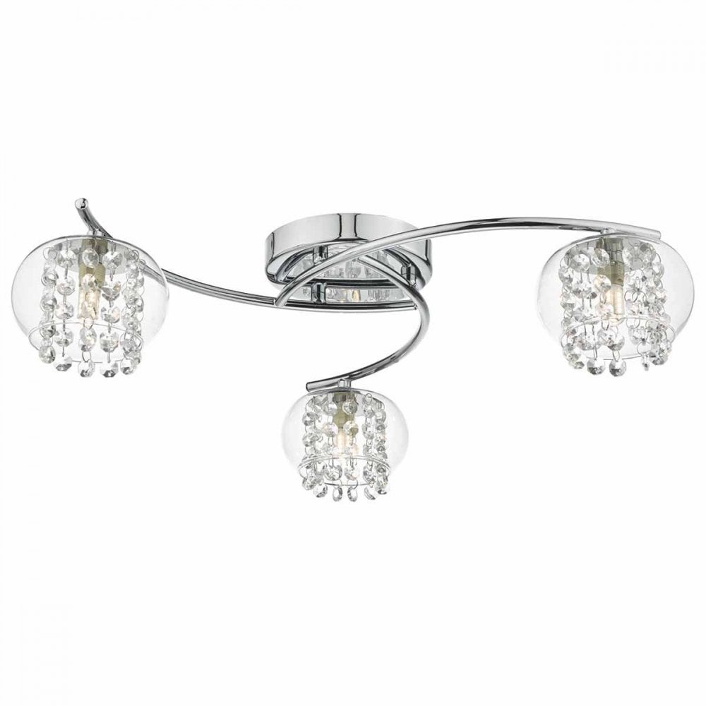 The ELMA 3lt semi flush features crystal glass beads that sparkle intensely as they diffuse the light encased in a glass shade This pretty wall light, finished in polished chrome.