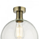 The Emerson flush ceiling light is a perfect example of the refined industrial style, inspired by industrial lighting using a rich pallet of materials and finishes. Featuring a wonderfully heavy machined lamp holder with an aged brass finish. Finished with a clear glass globe shade.