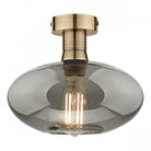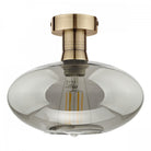 Emerson Antique Brass & Oval Smoked Glass Semi Flush