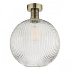 Emerson Antique Brass & Ribbed Glass Round Semi Flush