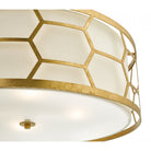 The Epstein transcends beauty; featuring a geometric patterned frame with a hand applied, distressed, gold leaf finish and an ivory linen shade that allows the light to softly shine through.