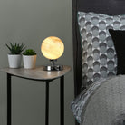 Esben Polished Chrome Touch Table Lamp with Planet Glass Shade