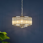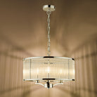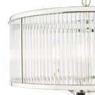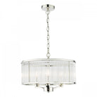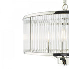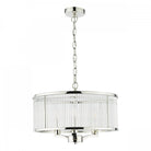The Eveyln 3 light glass and nickel pendant is a glamorous mix of glass and polished nickel. A beautiful 3 arm pendant is surrounded by a glass rodded drum dispersing the light and creating a sparkling effect which is a bit softer than traditional crystal. The Eveyln pendant light is perfect for the bedroom, lounge or over a dining table. Fitted with a matching nickel chain of 1 metre which is adjustable on installation.