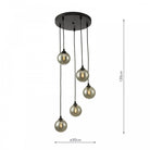 Federico Matte Black 5 Light Cluster Pendant with Smoked Glass Shades