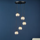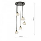 Federico Matte Black 5 Light Cluster Pendant with Wire Glass Shades