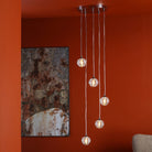 The Federico spiral cluster pendant is a minimal design in polished chrome with 5 spiralling clear ribbed glass shades. We find it’s minimalism so versatile and refreshing, it’s just at home as a stairwell light as it is lighting a dining table or over a bed. The black fabric cable can be adjusted on installation but if you want to go very short you will need the help of an electrician.