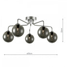 A modern yet simple 5 light semi flush ceiling light in polished chrome and smoked glass.
