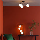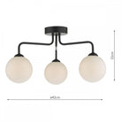 The FEYA 3 light semi flush ceiling light in matt black and opal glass. A simple semi flush ceiling light designed in a modernist style with simple arms yet elegant arms. The height of the Feya ceiling light make it easy to place in most modern rooms where the ceiling height is often lower