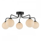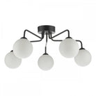Feya Matte Black 5 Bulb Semi Flush Light with Opal Glass Shades