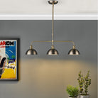 Governor Antique Brass 3 Light Bar Pendant with Antique Chrome Shades