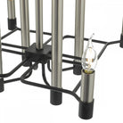 The ISAMBARD 8lt pendant features long, satin chrome candle drips that appear to float between a frame of contrasting, matt black iron work.