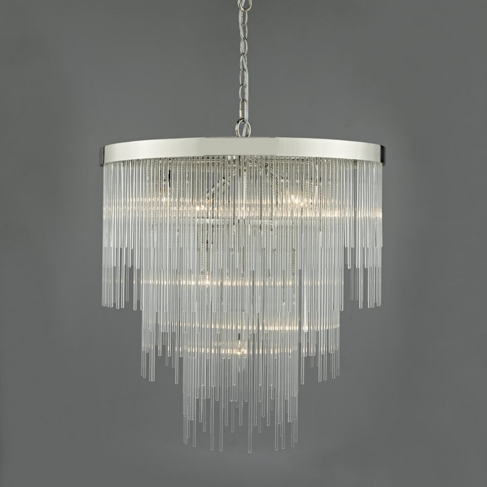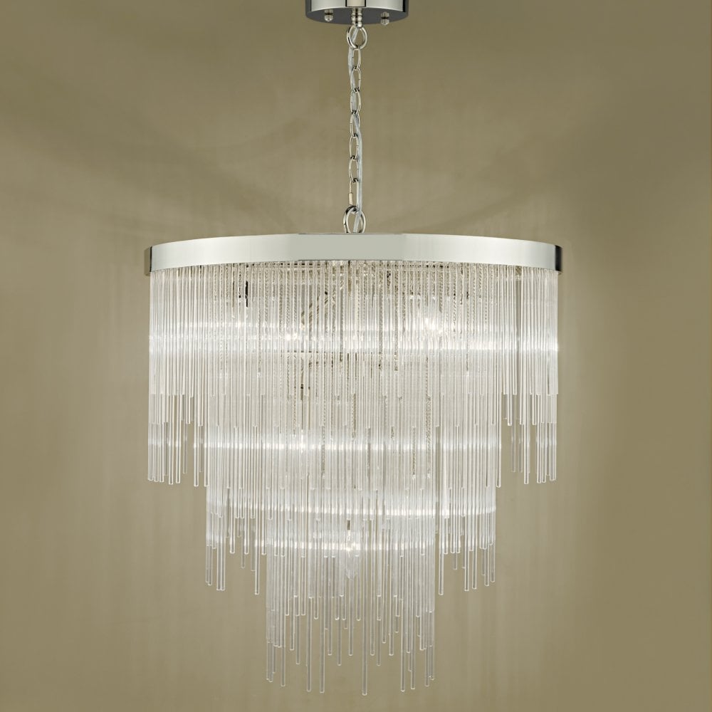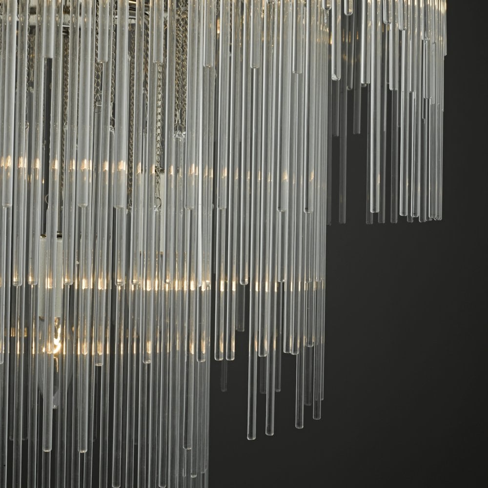 The Isla 2 Light Wall Light ISL0950 is a decorative wall light in a polished chrome finish with hundreds of dangling clear glass rods designed to look captivating as it casts its spectacular light. Matching 7 light pendant available.