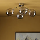 Izzy Polished Chrome 4 Light Semi Flush & Smoked Dimpled Glass Shades