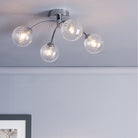 The Izzy 4 light semi flush ceiling light in polished chrome and twisted glass. The polished chrome metal work and twisted blown glass add a premium feel to this semi flush ceiling light.