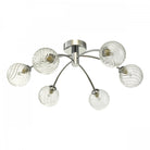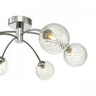 The Izzy 6 light semi flush ceiling light in polished chrome and twisted glass. The polished chrome metal work and twisted blown glass add a premium feel to this semi flush ceiling light.