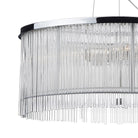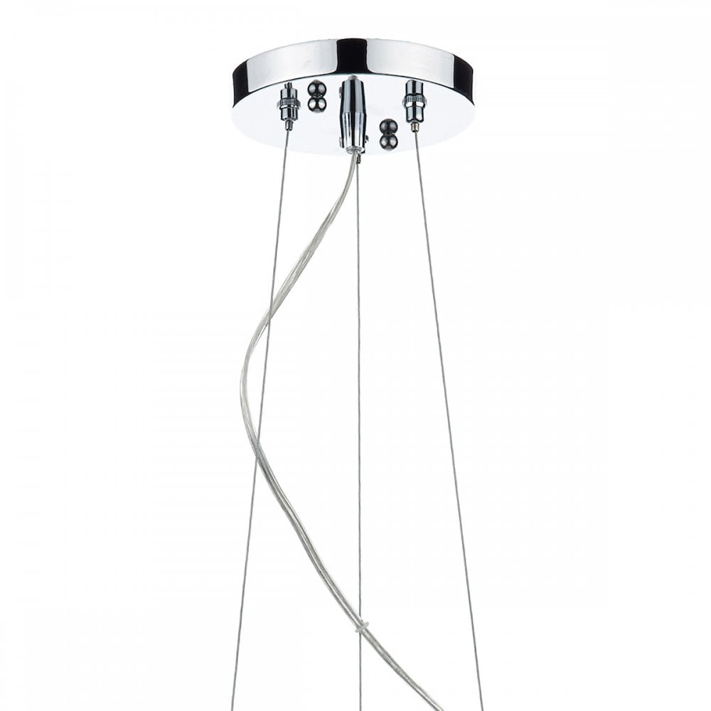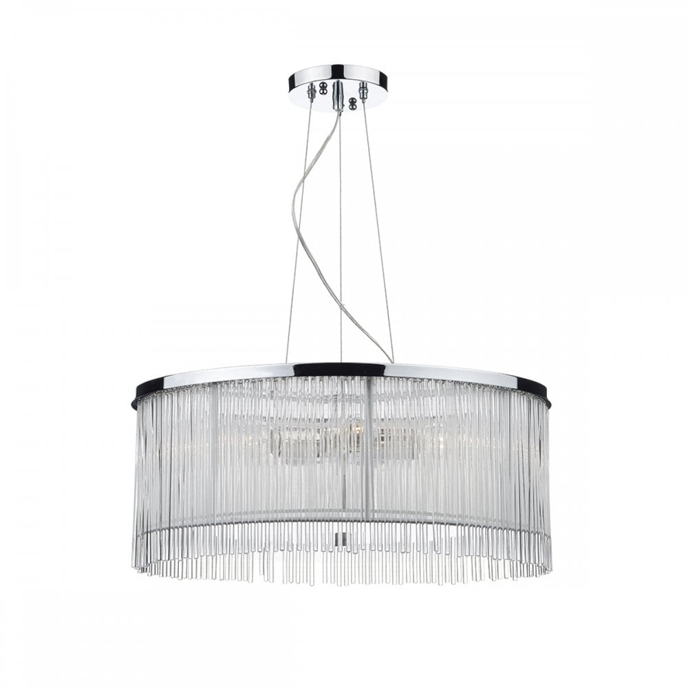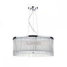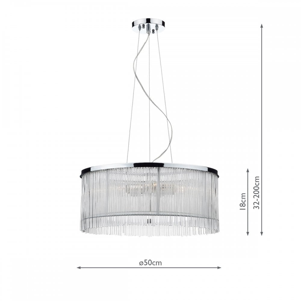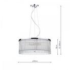 The JAPAN 3lt Pendant has a polished chrome ceiling plate and frame and is finished with a decorative 'frill' of clear glass rods around an inner white string shade.