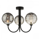 The Jared 3 light semi-flush ceiling light in black is a statement of simplicity. With sweeping J-arms and oversized smoked dimpled glass.