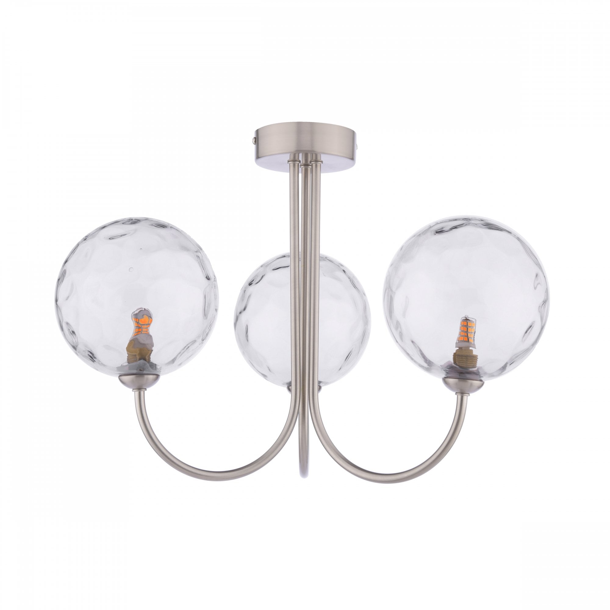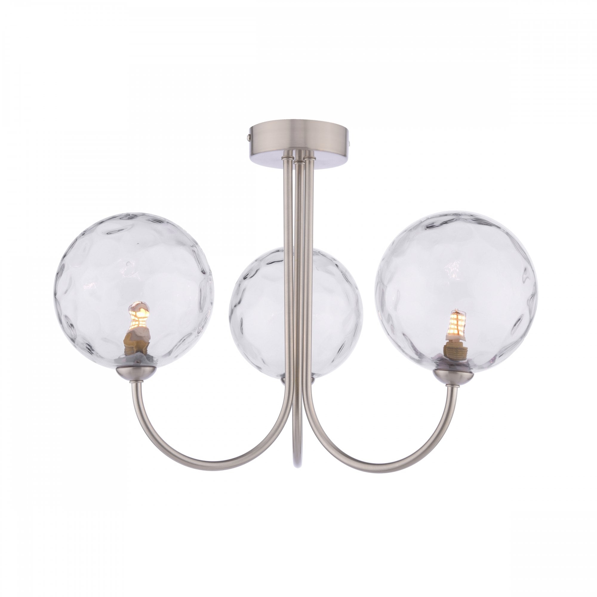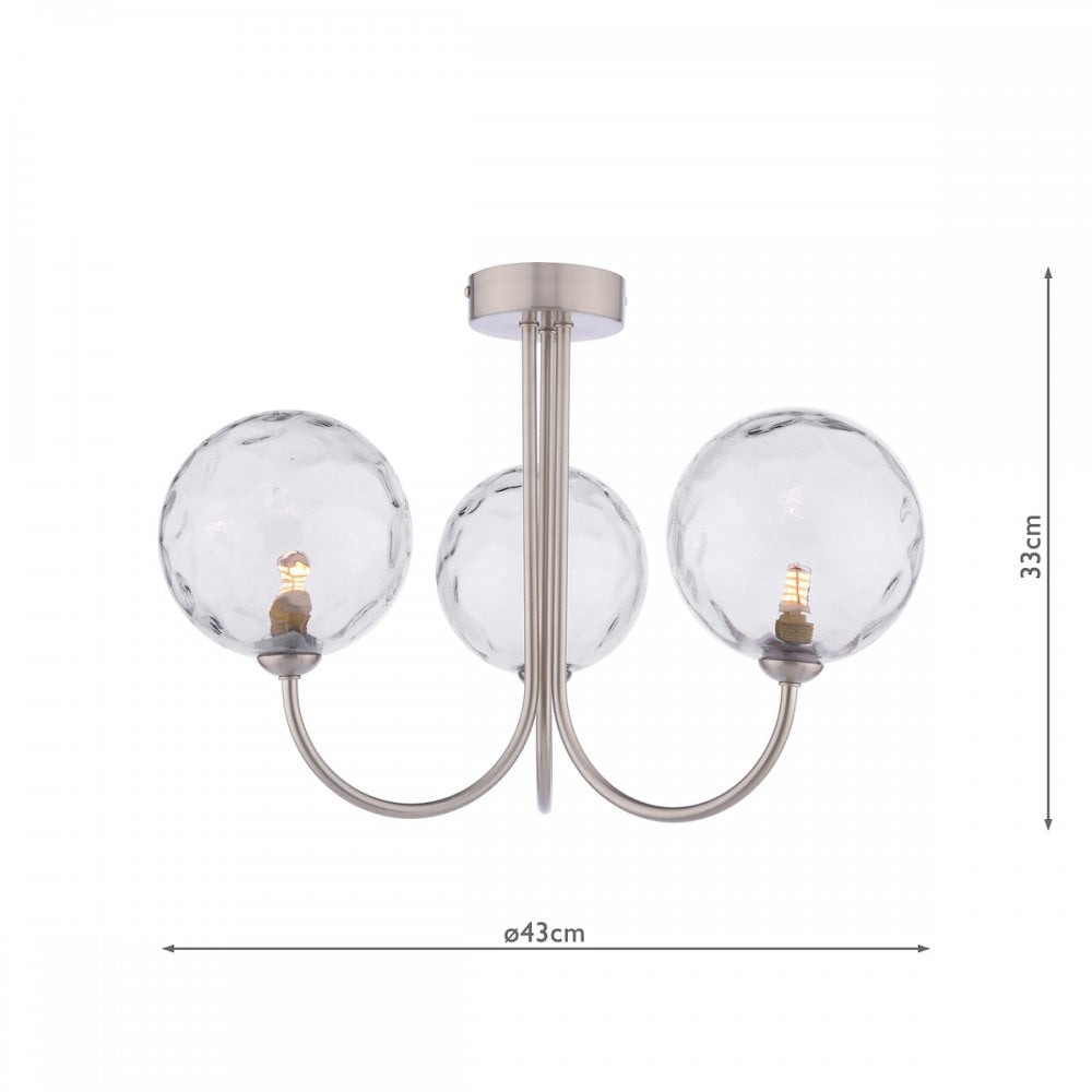 Jared 3 Light Semi-Flush Satin Nickel & Dimpled Clear Glass