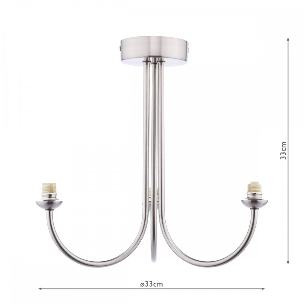 The Jared 3 Light Semi-Flush Satin Nickel Fitting Only is a beautiful semi-flush fitting shown without glass. The Jared semi-flush can be configured in any way you like, with any of our beautiful glass shades (sold separately). The Jared semi-flush features a satin nickel finish with a clean style that complements any decor. Use our configurator to create a unique light that is perfect for your home. The Jared semi-flush is suitable for an entryway, dining room or anywhere a little style is needed.
