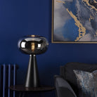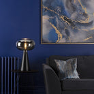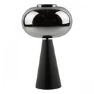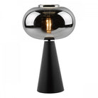 The stunning Jenson Table Lamp is a contemporary take on the retro space-aged design, with a tall tapered black stem and large reflective glass shade. Pair with an LED filament lamp or opal globe for two different looks.