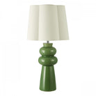 The Jordana Table Lamp makes a confident design statement, blending bold colour with refined detailing. Its porcelain base is finished in a glossy moss green glaze with subtle tonal variation, creating natural depth that shifts beautifully in the light. A polished chrome stem contrasts with a cotton-rich ivory petal shade and matching lining, casting a warm, inviting glow. Finished with a luxury green braided cable and in-line switch, the Jordana is designed for versatile use in living rooms, bedrooms, kitchens or hallways. Elegant yet playful, it adds vibrancy and character while complementing natural materials and neutral schemes.