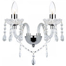 Enhanced by pear-shaped crystal droppers and festooned with crystal beads, the glamorous Katie double wall light will look sensational in practically any room in your home. It features acrylic barley twist arms, acrylic crystals and decorative cut-glass sconces, so is far less heavy than an all-glass version would be.