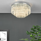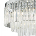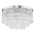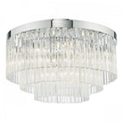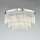 The Logan 5 light semi-flush ceiling light in polished chrome is comprised of three tiers of Clear crystal to give a modern take on the usual tiered chandelier. Compatible with our G9 halogen or LED lamps, sold separately. Also available with smoked glass, and has a matching sister pendant called the Giovana.