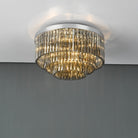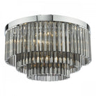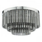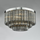 The Logan 5 light semi-flush ceiling light in polished chrome is comprised of three tiers of smoked crystal to give a modern take on the usual tiered chandelier. Compatible with our G9 halogen or LED lamps, sold separately. Also available with clear glass, and has a matching sister pendant called the Giovana.