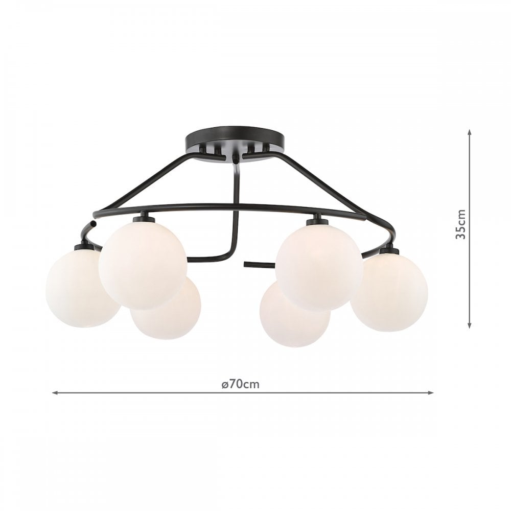 Luana Matt Black & Opal Glass 6 Light Semi-Flush