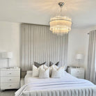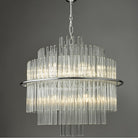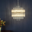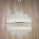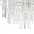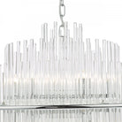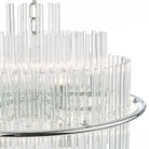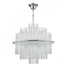 The Lukas 13 light Pendant in polished chrome consists of hundreds of tiered glass rods appearing to give a floating illusion inside a polished chrome band. This fitting is height adjustable and would make the perfect statement piece for any living area.